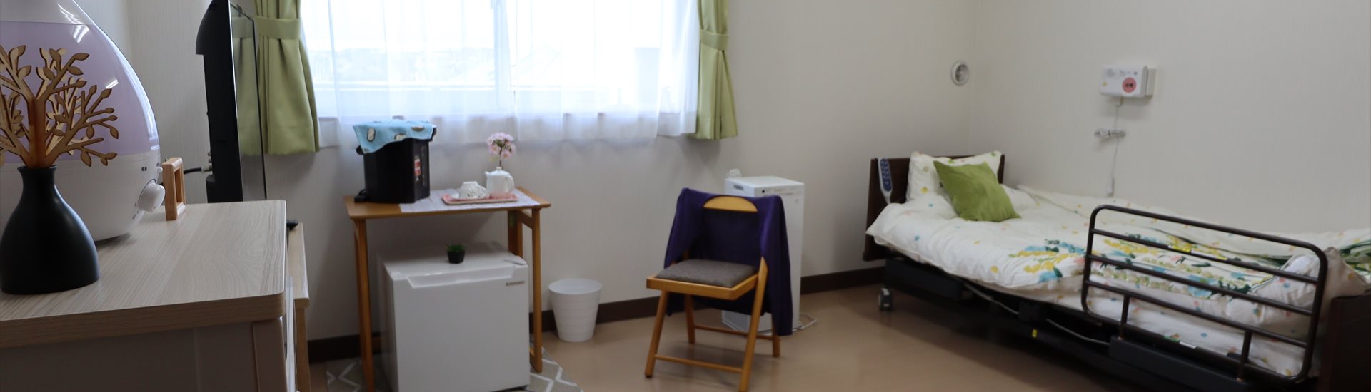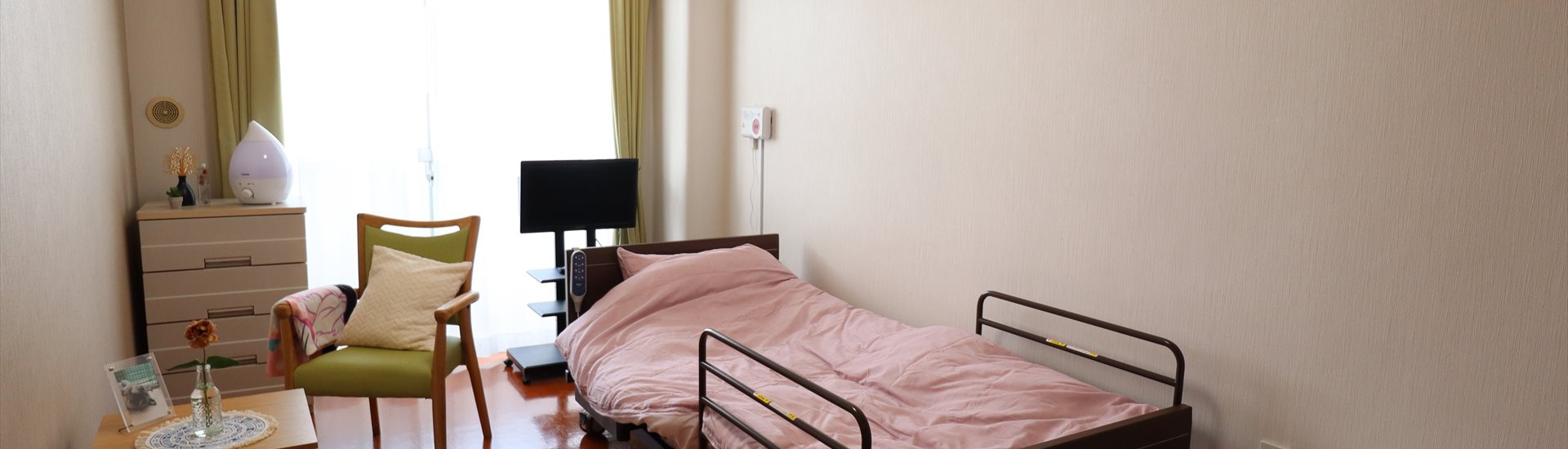 個室でプライバシーが守られます。トイレ、クローゼット、エアコン、照明器具、洗面台、ナースコール完備。